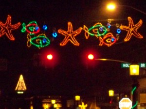 It all begins Thanksgiving weekend with the myriad of neon fish swimming in a sea of festive colored lights wired into a banner stretching from side to side high above Main Street as lighted starfish lend a soft amber glow to fresh evergreen wreaths mounted on each lamp post lining Broadway Avenue.